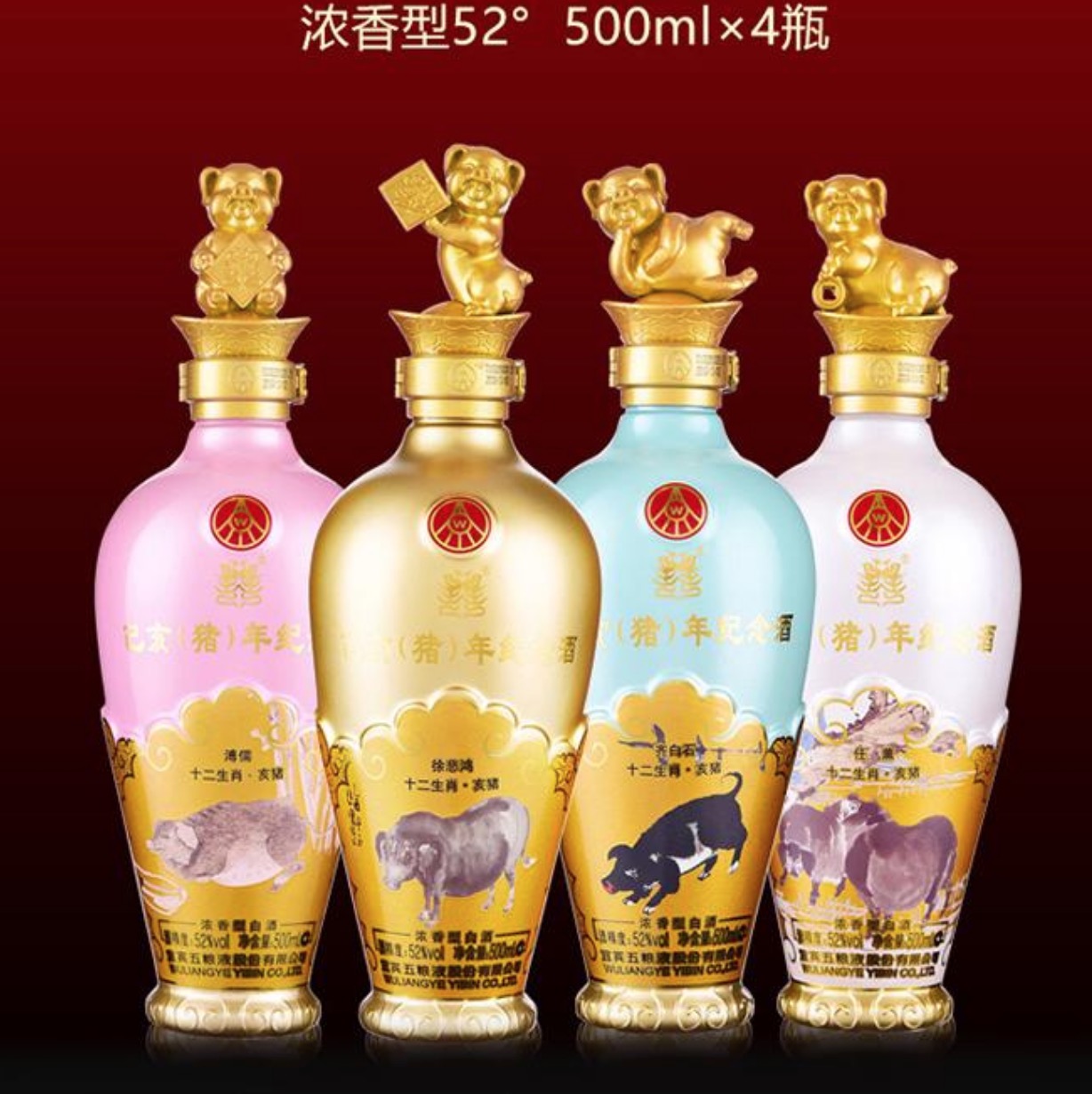 ¥1680.00五粮液己亥猪年纪念酒2018年52度500ml*4礼盒装